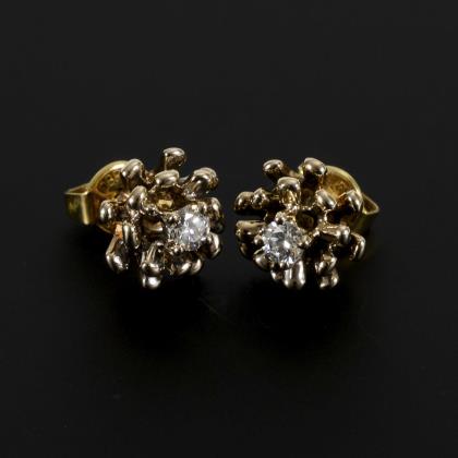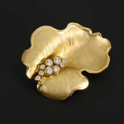 Manschettenknöpfe mit blütenförmigen Köpfen an einer Kettenverbindung, besetzt mit je einem in Weißgold gefassten Altschliff-Brillanten