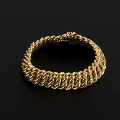 Breites Goldarmband als Doppelpanzerkette. Kastenschloss mit doppelter Achtersicherung