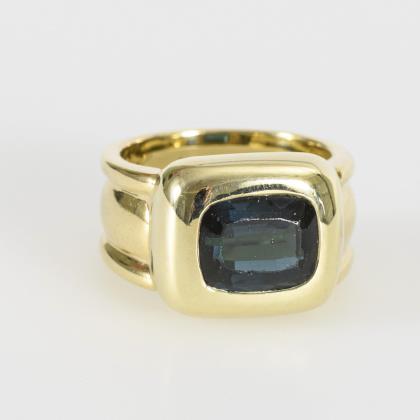 Breiter Ring mit blauem Farbstein, wohl Saphir, in Zargenfassung