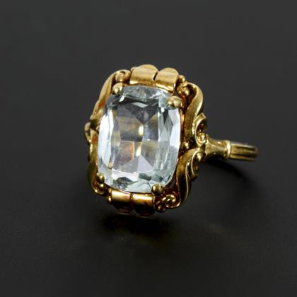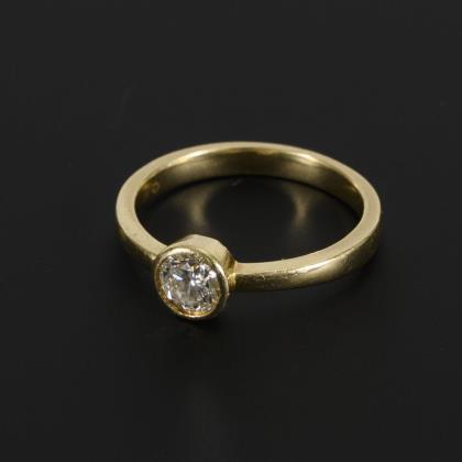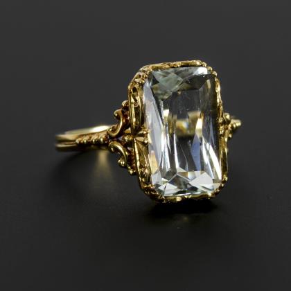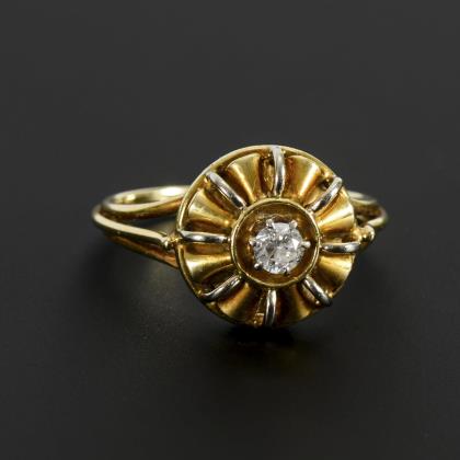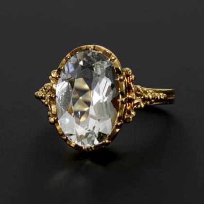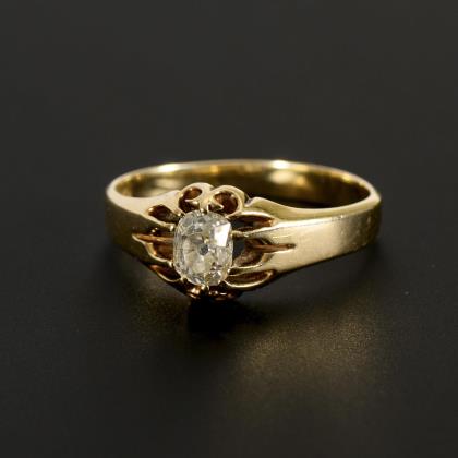Ring mit krappengefasstem, ovalen Altschliff-Solitär