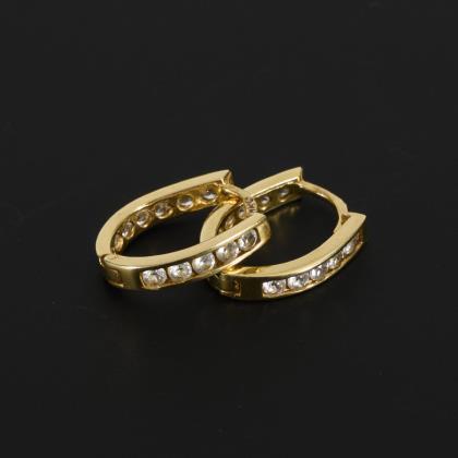 Kleine Creolen mit umläufigem Besatz aus kanalgefassten Brillant-Imitationen, wohl Glas