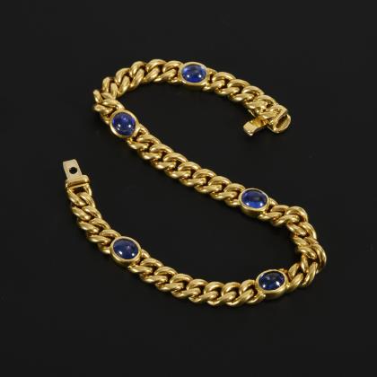 Armband mit blauen Farbstein-Cabochons, wohl Saphire