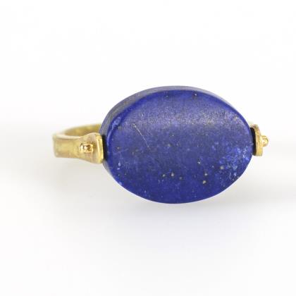 Unikater, antikisierend gestalteter Ring mit drehbarem Lapis Lazuli in Ovalform