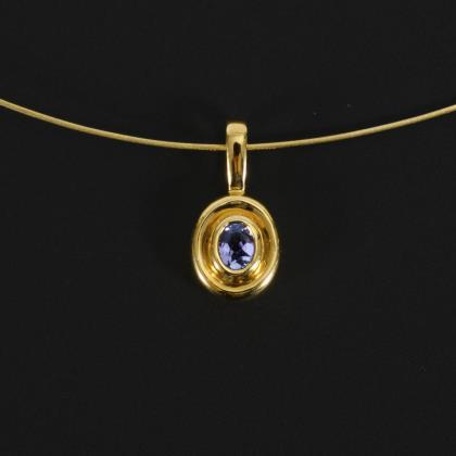 Kronenförmiger Anhänger mit Saphir-Cabochon.