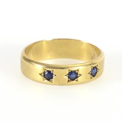 Bandring mit 3 blauen Farbsteinen, wohl Saphiren.