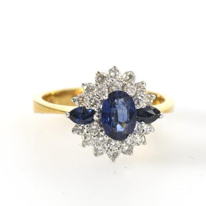 Ring mit blauen Farbsteinen, wohl Saphiren, und Diamanten.