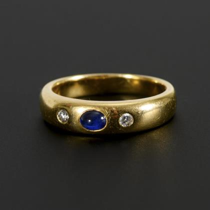 Bandring mit Saphir-Cabochon, flankiert von zwei Brillanten