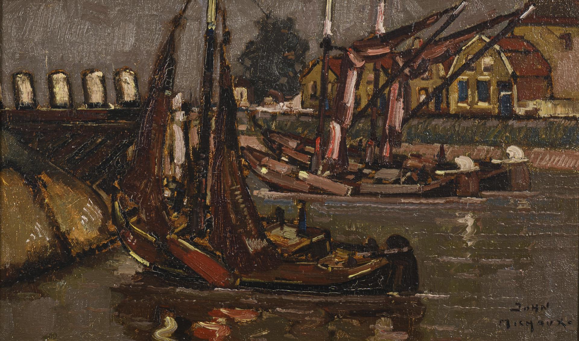 MICHAUX, John (1876 Antwerpen - 1956 Ixelles/Belgien). Schiffe im Hafen.