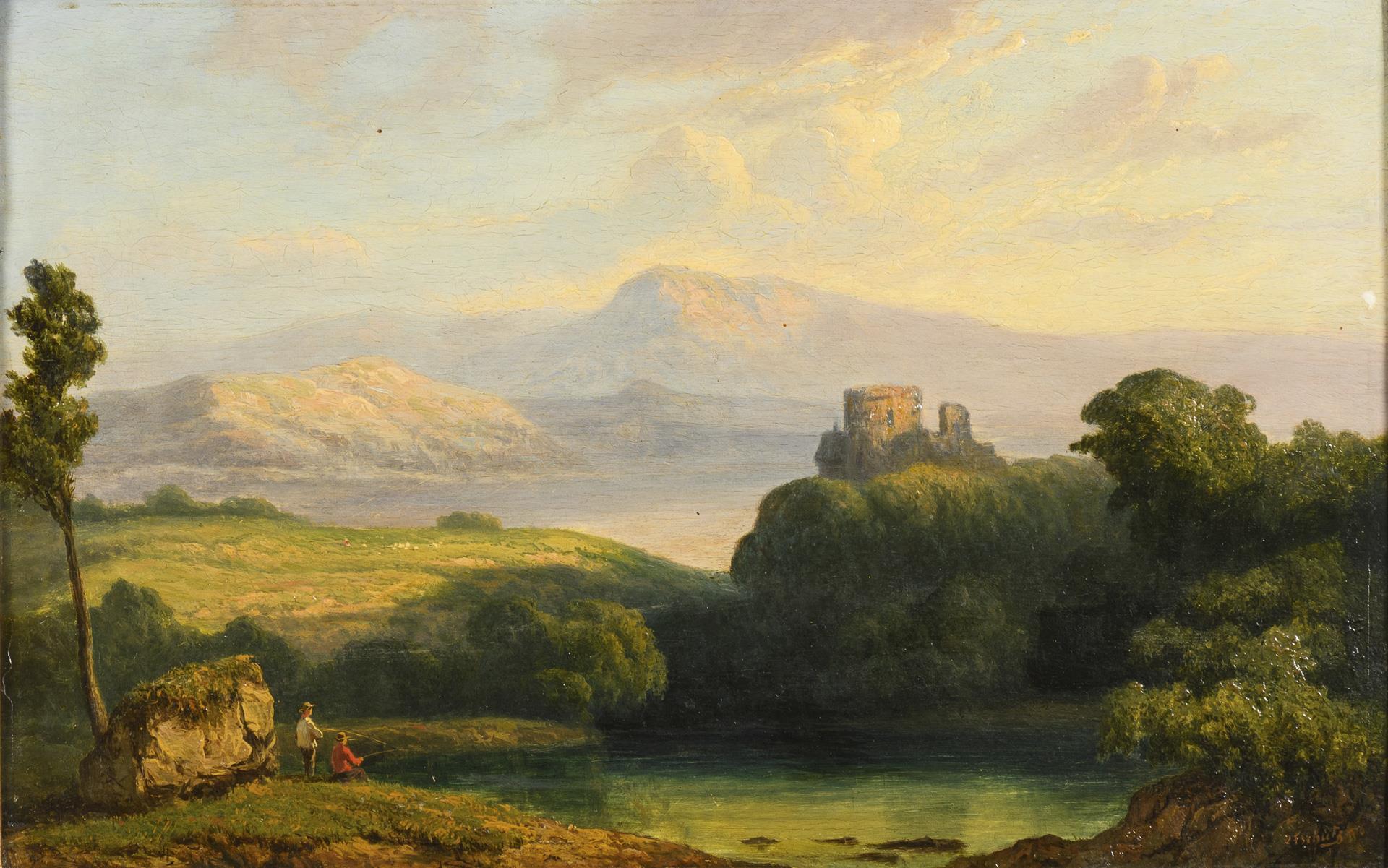 PELLEGRINI, Carlo (1866 Albese - 1937 Genève). Flusslandschaft mit Anglern.