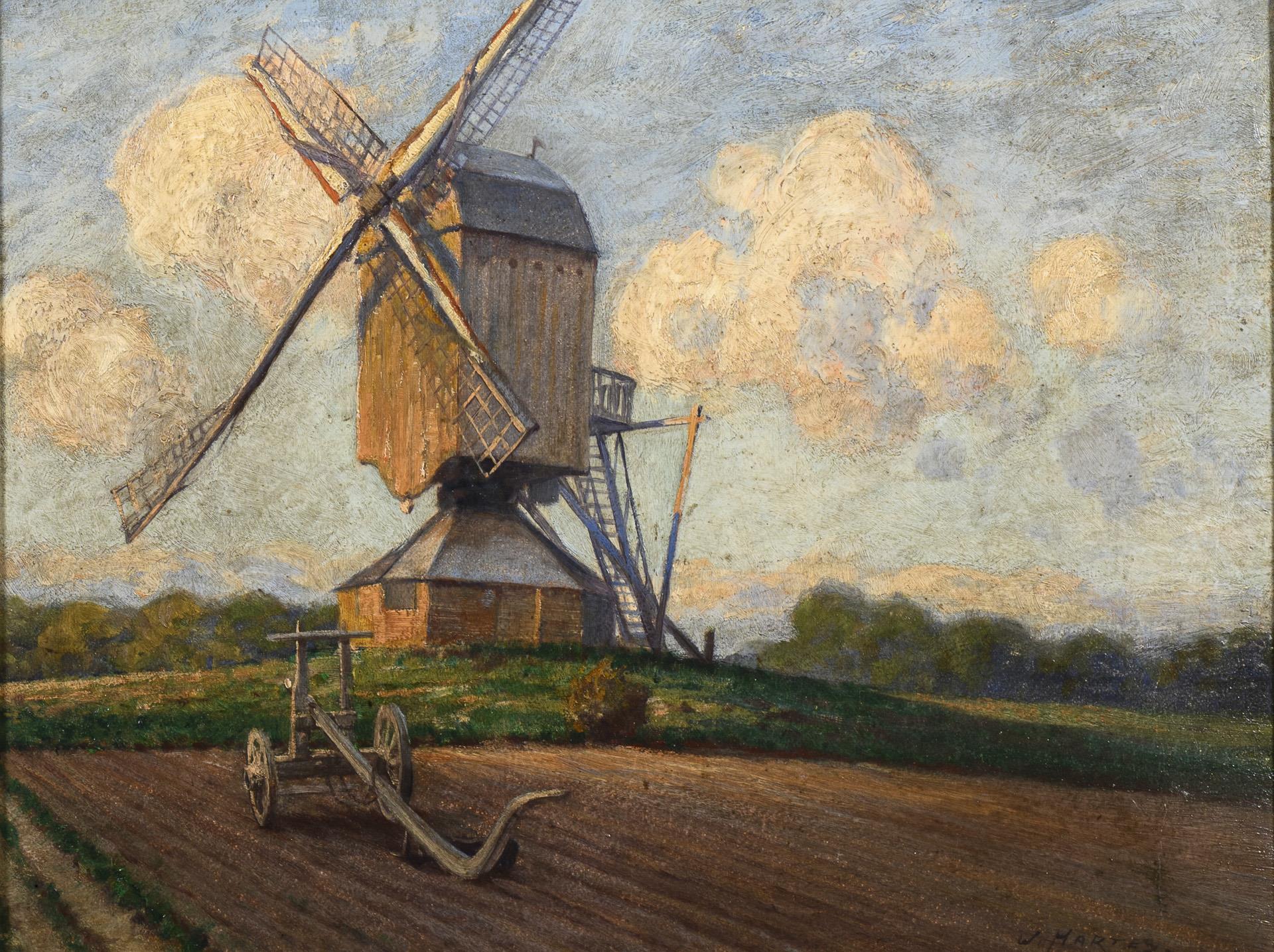 Englische Landschaft mit Wassermühle und Staffagefiguren im Sonnenschein