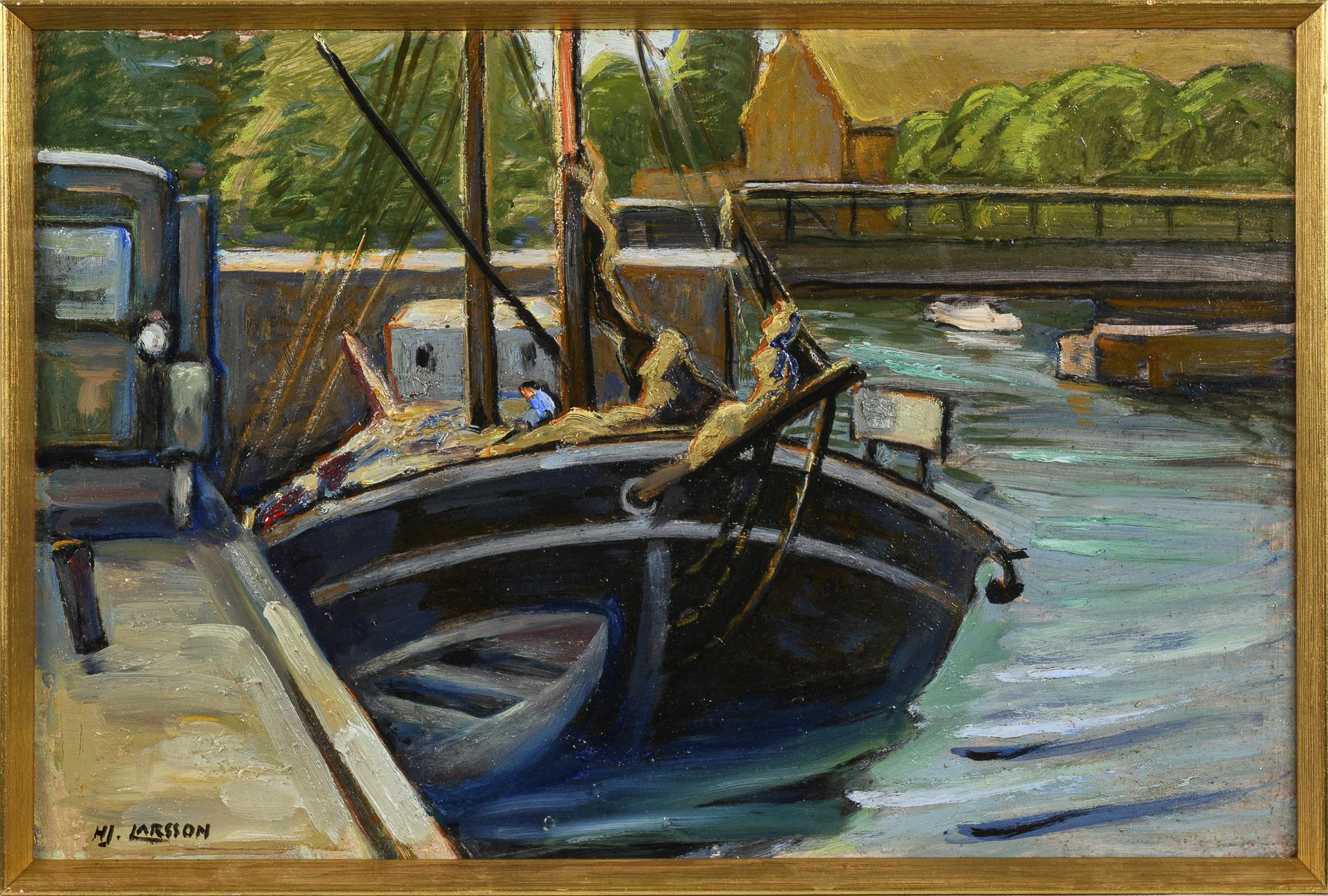 LARSSON, Hjalmar (1881 - 1938). Schiff am Kai.