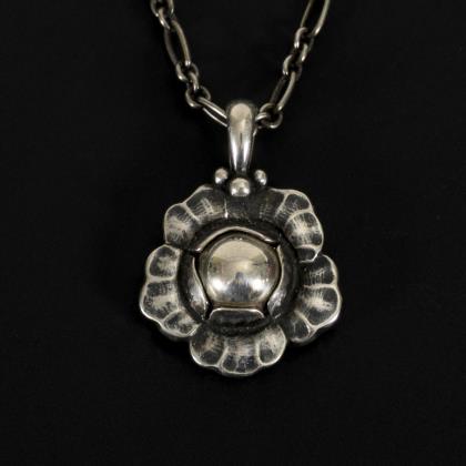 Kette aus der Serie "Schmuck des Jahres" für das Jahr 2002, blütenförmiger Anhänger an einer Gliederkette mit Federringschließe
