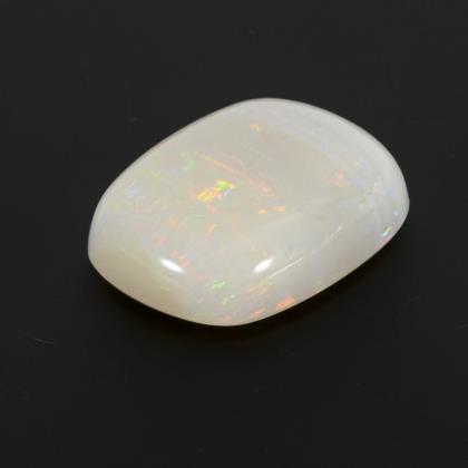 Ungefasster Weißopal mit bandartiger Struktur im Cabochon-Schliff mit nahezu rechteckiger Grundfläche