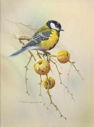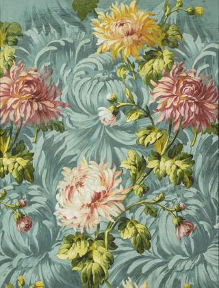 Darstellungen von Brombeerranken, Erika und Glockenblumen auf neutralem Hintergrund