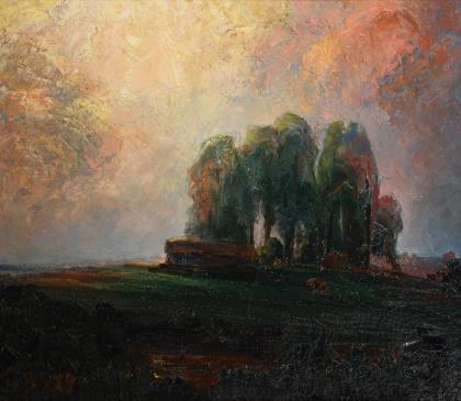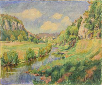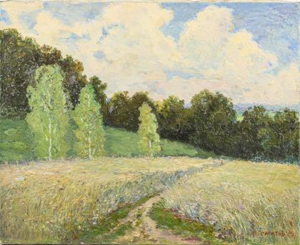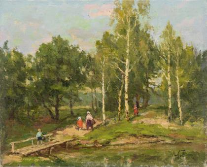 Russischer Maler: Sommerliche Landschaft mit Staffage.