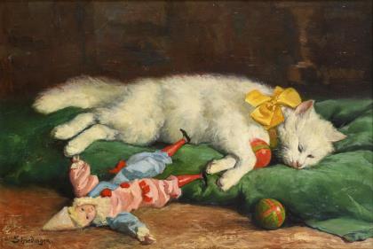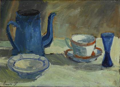 Undeutlich signiert: Stillleben mit Teepuppe.