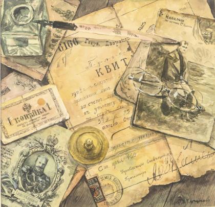KUCHUMOV, Vasili Nikitich (1888 - 1959). Stillleben mit Briefen und Dokumenten.