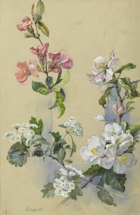 LANGE, Gustav (1811 Mülheim/Ruhr - 1887 Düsseldorf). Stillleben mit Apfelblüten.