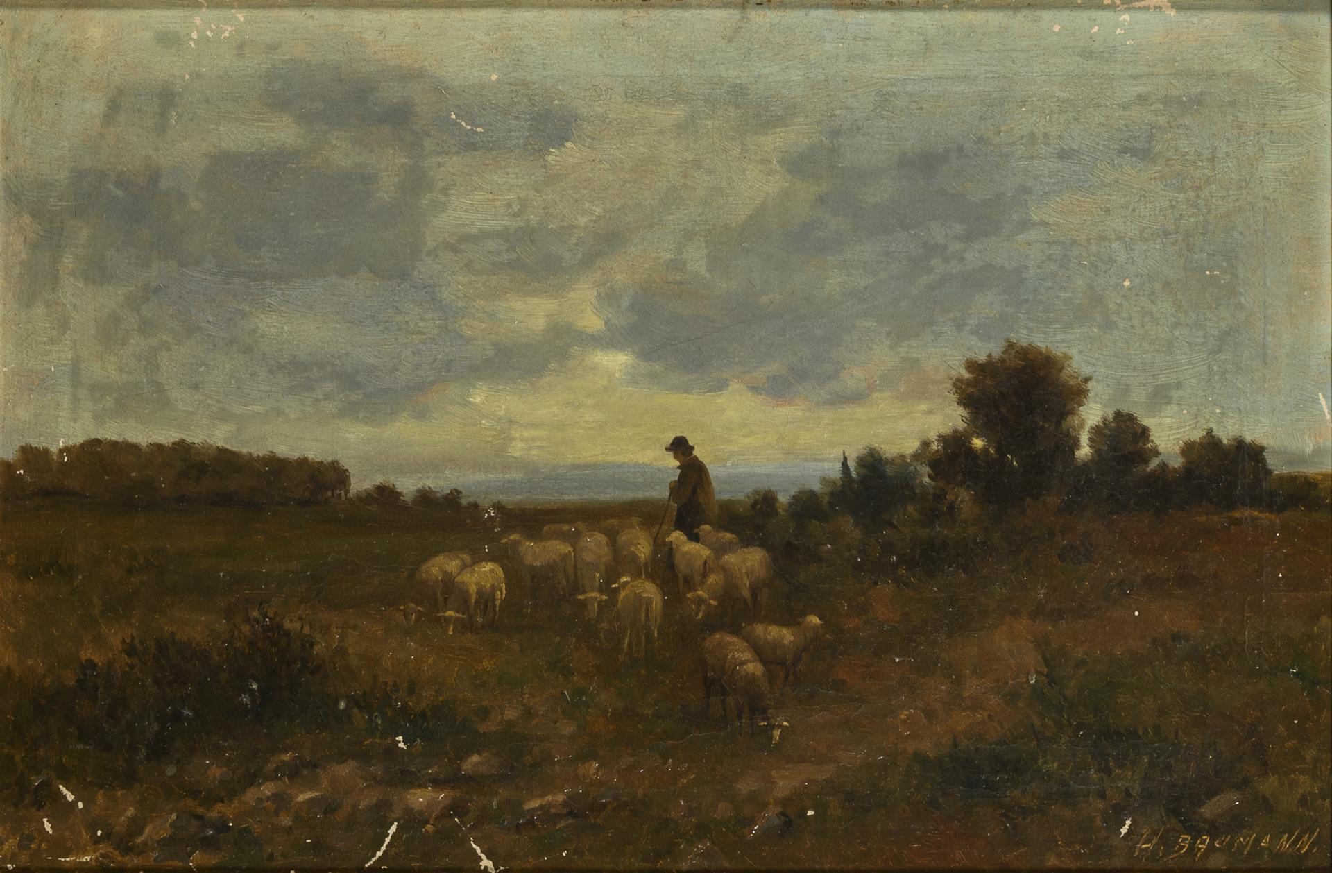 BAUMANN, H.. Schäfer mit Herde.