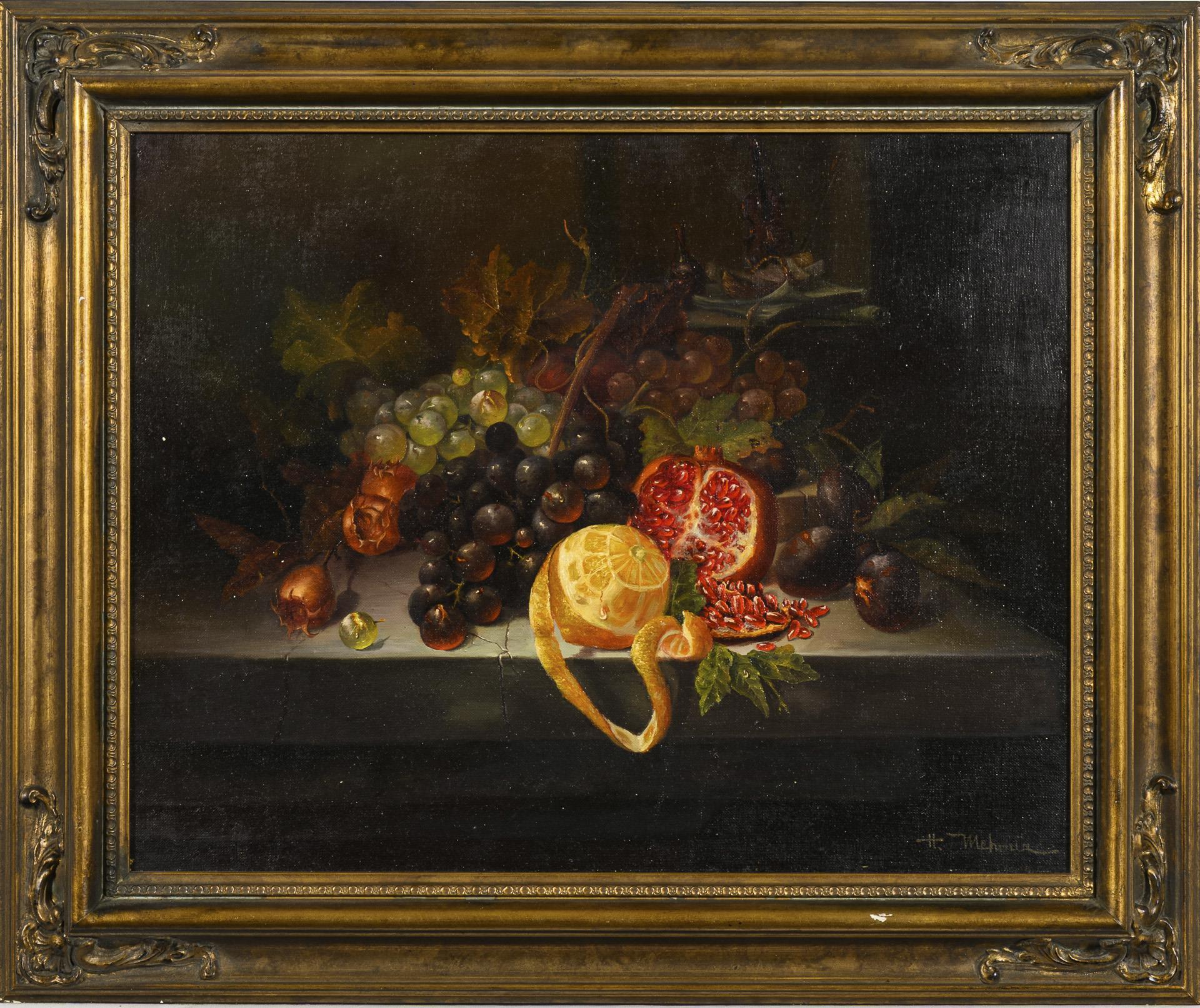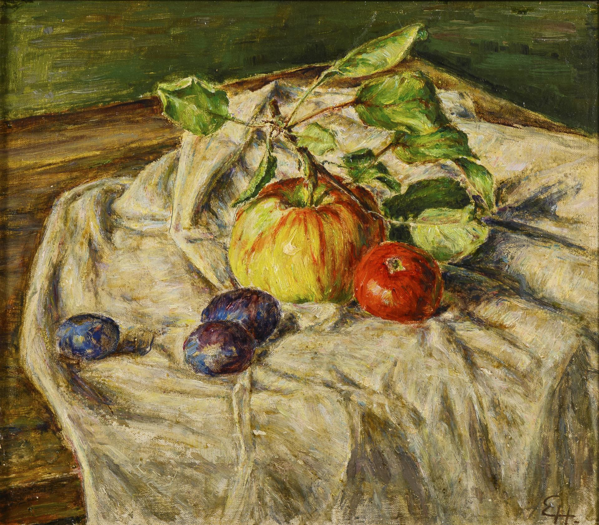 Monogrammit "EH": Stillleben mit Obst.