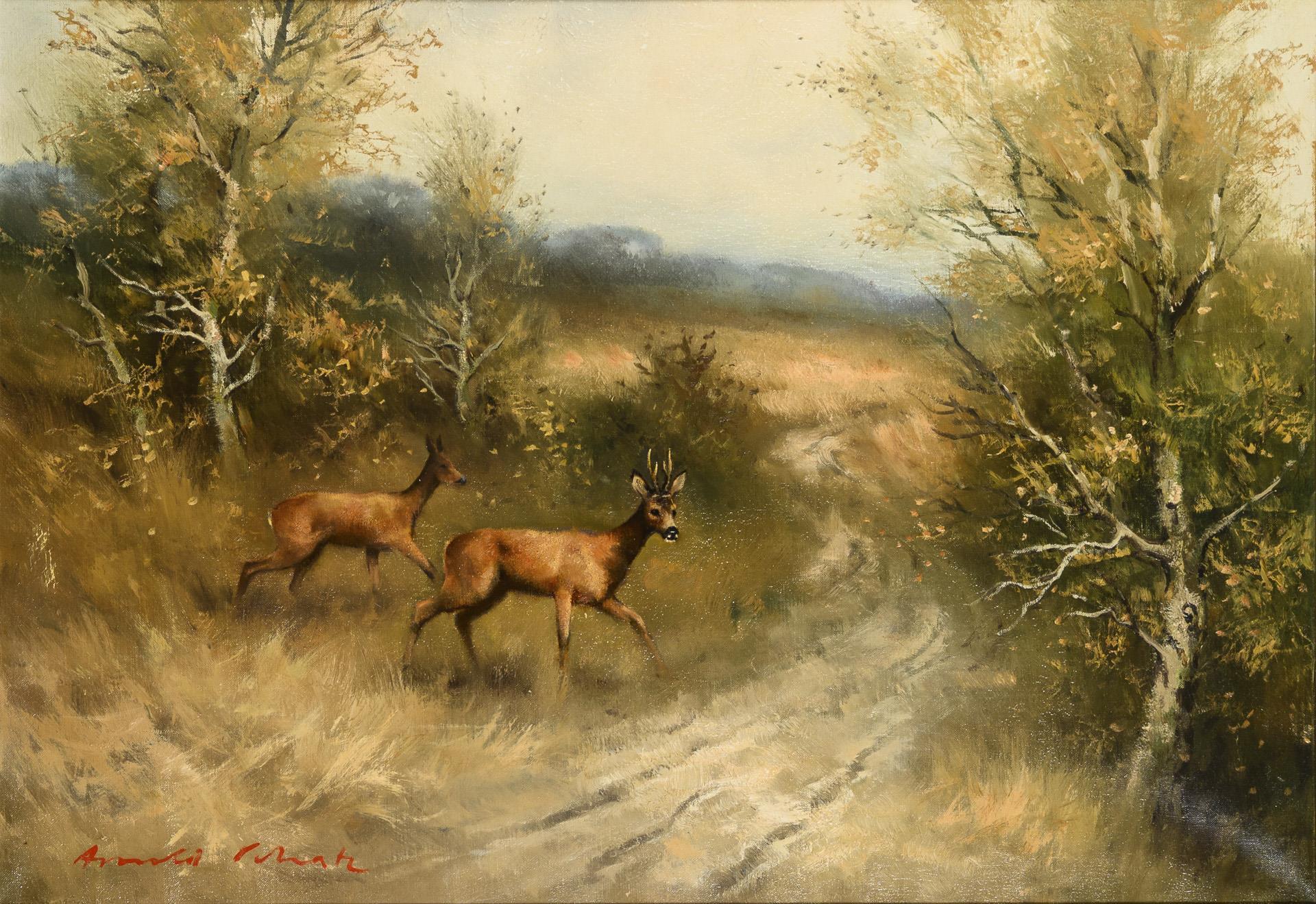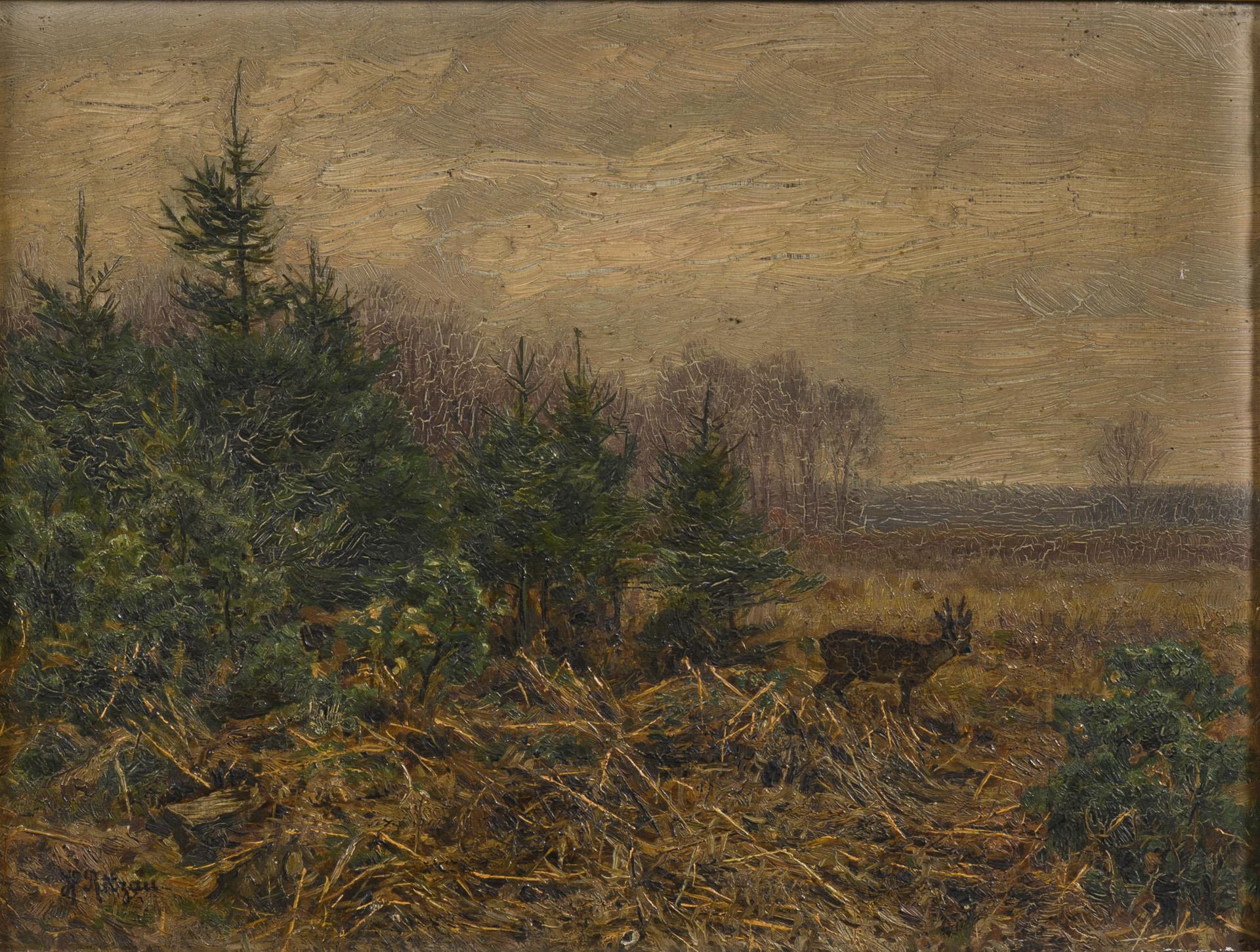 RITZAU, Hermann (1866 Wolsdorf - 1922 Helmstedt). Rehbock am Waldrand.