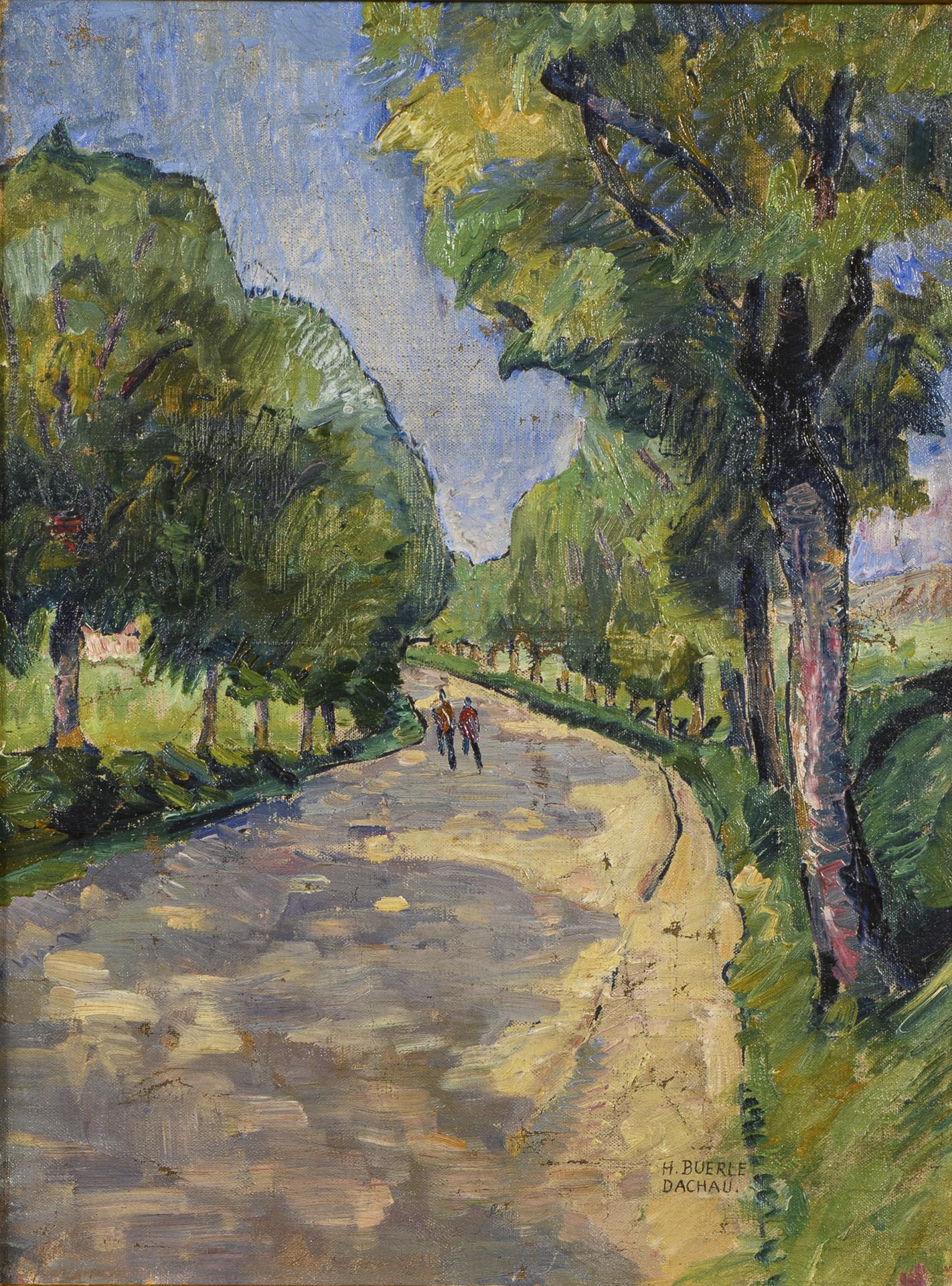 BUERLE, H.. Sonnige Straße mit Staffage.