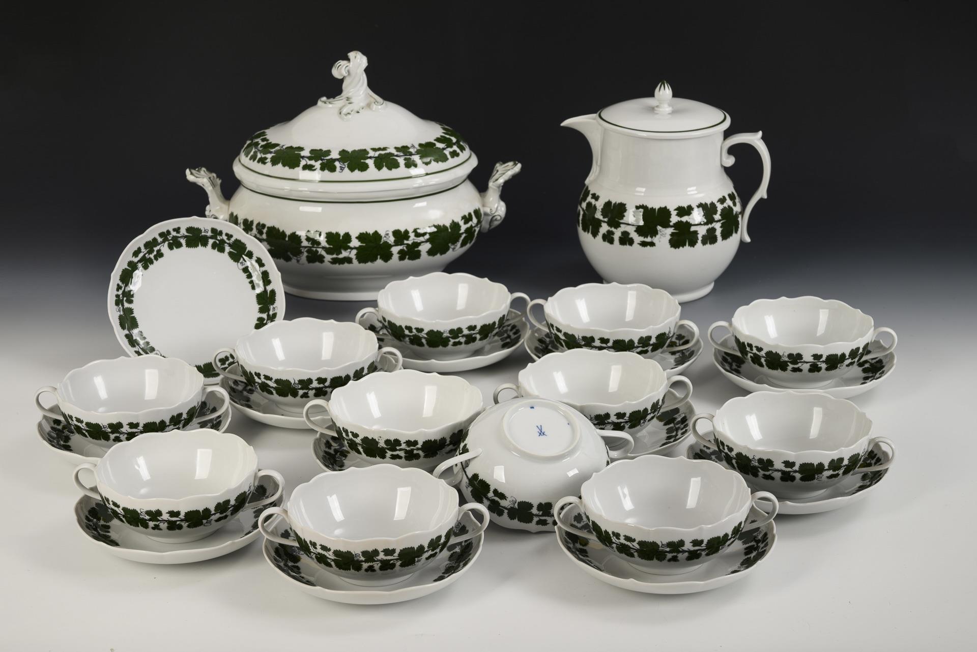 Suppenservice mit Weinlaubdekor. Meissen.