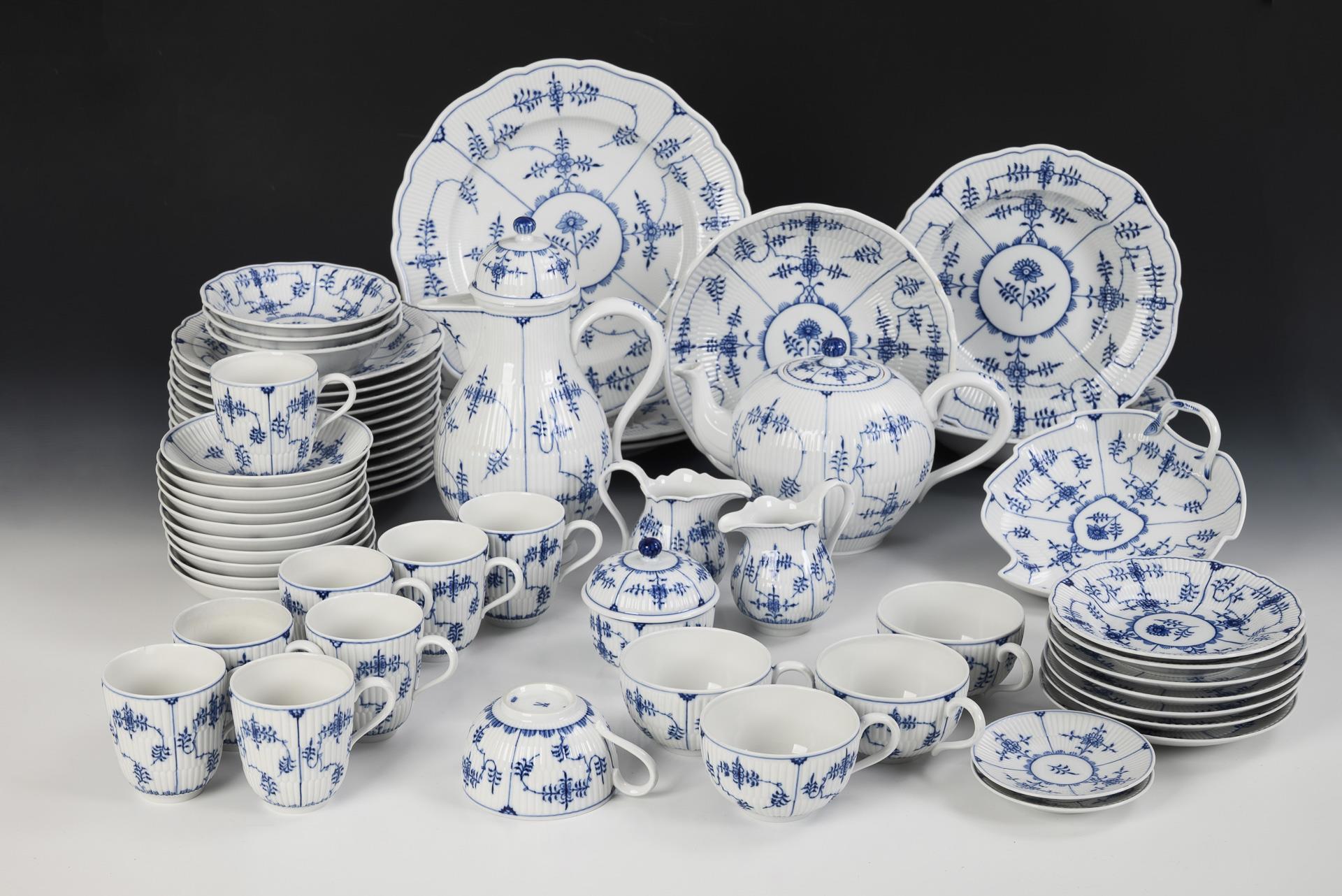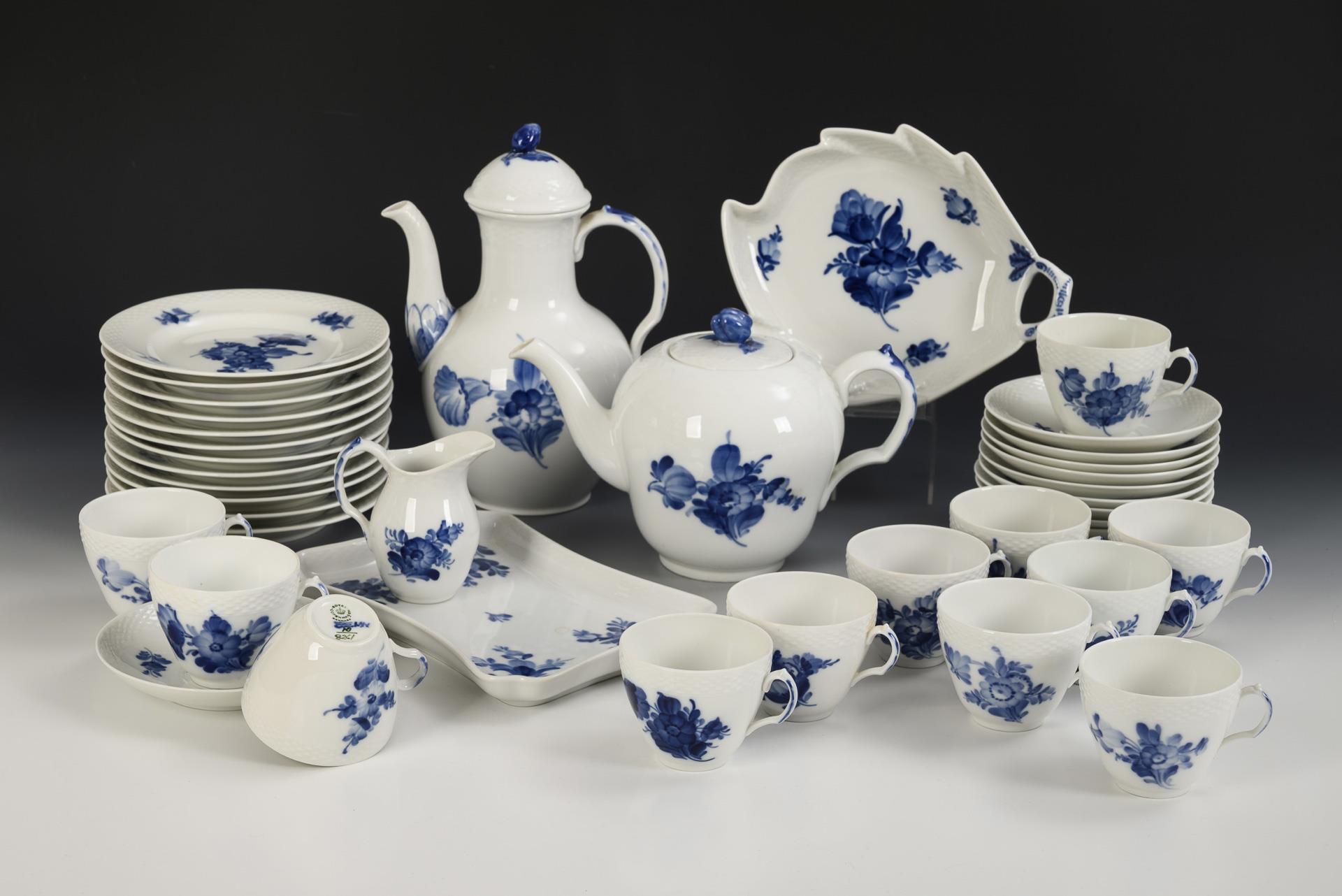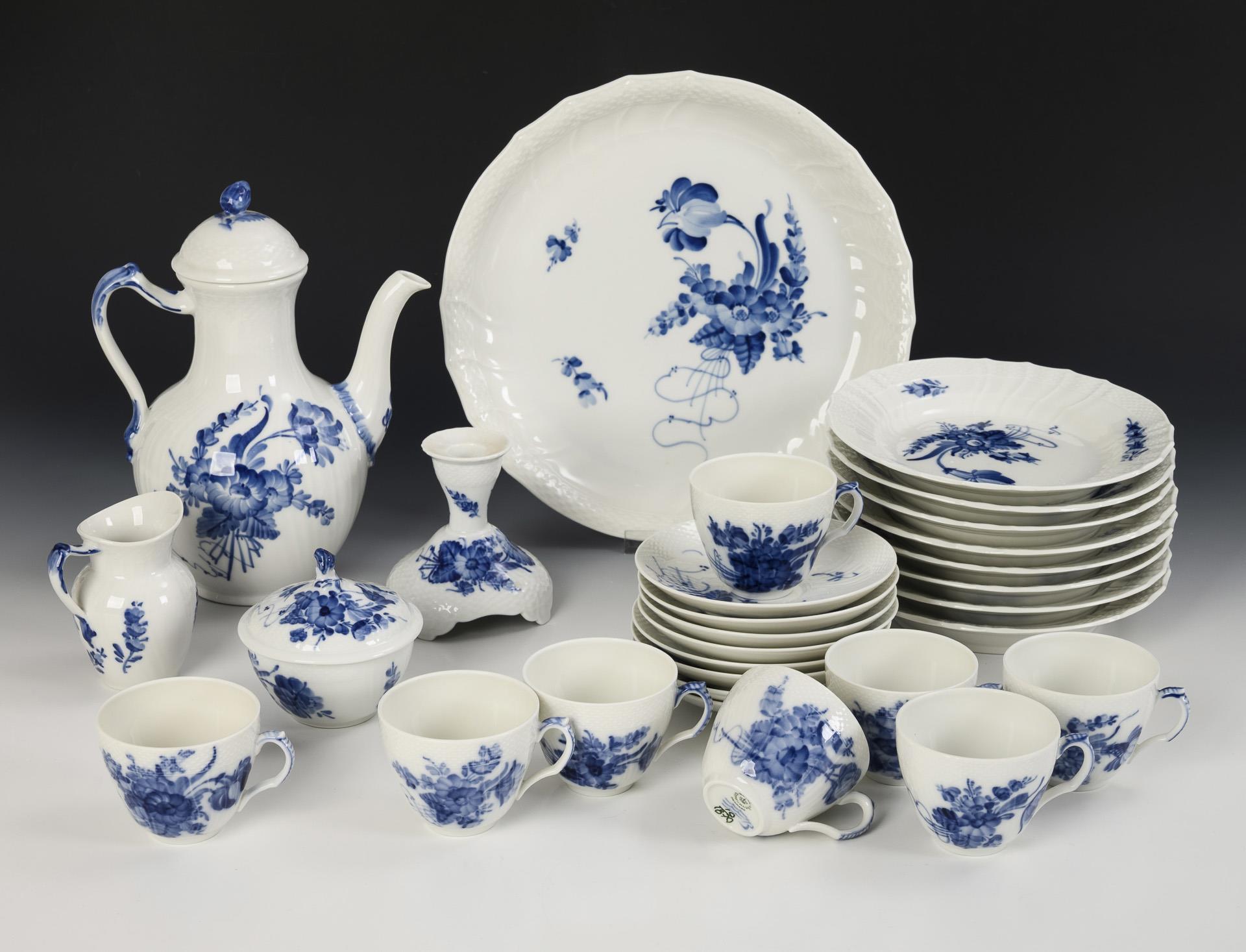 63 Teile eines Kaffee-, Tee- und Mokkaservice "Blaue Blume". Royal Copenhagen.