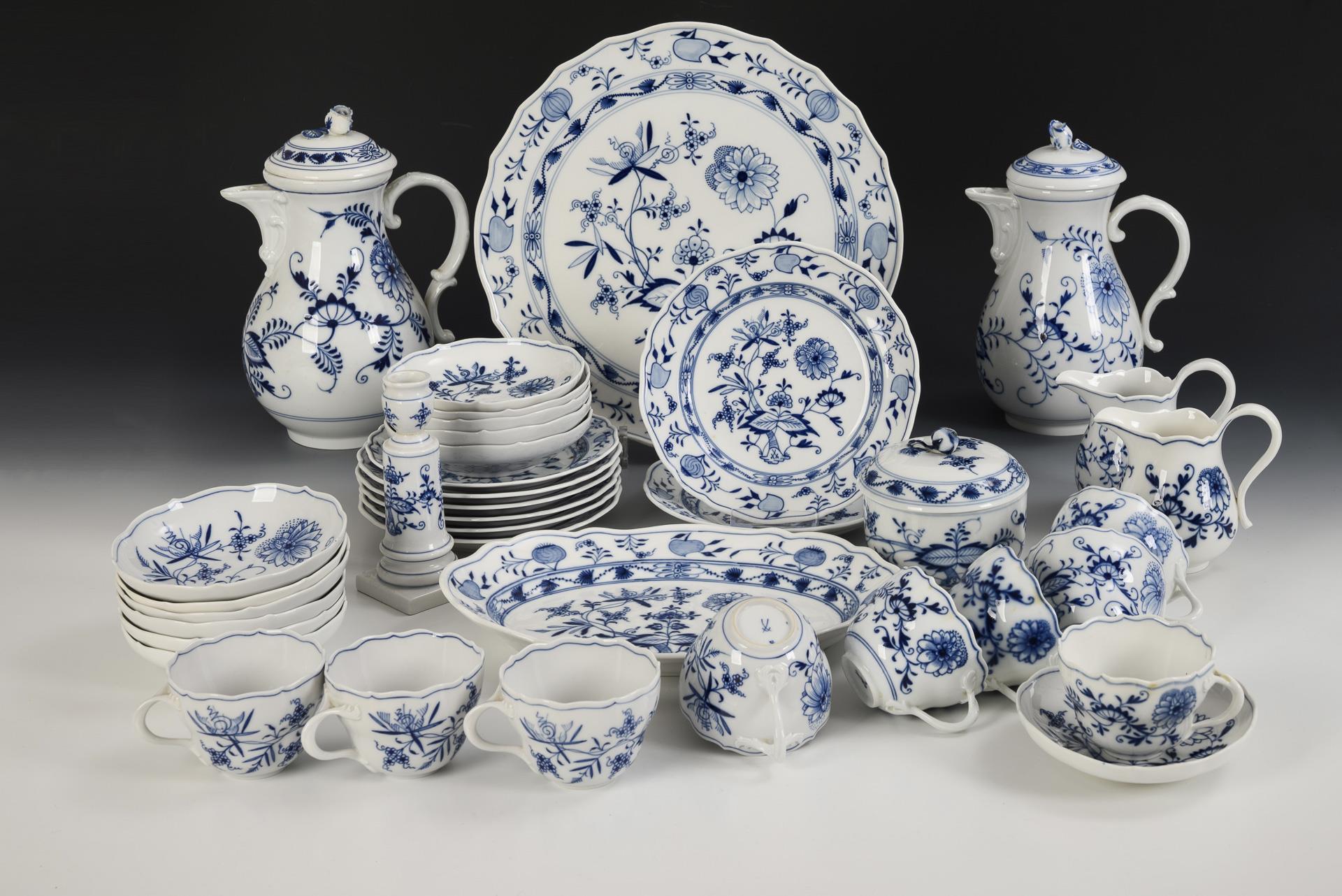 37 Teile eines Zwiebelmuster-Kaffeeservice. Meissen.
