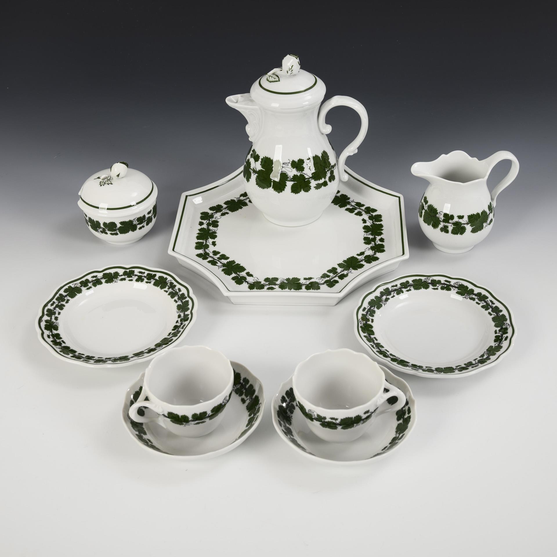 41 Teile. Form "Altozier". Kaffeekanne (H 24,5 cm), Teekanne (H 16 cm), Milchkännchen, 12 Kaffeetassen mit 12 Untertassen, 12 Kuchenteller, 1 Blattschale (L 23 cm) und 1 Tablett (L 23,5 cm)