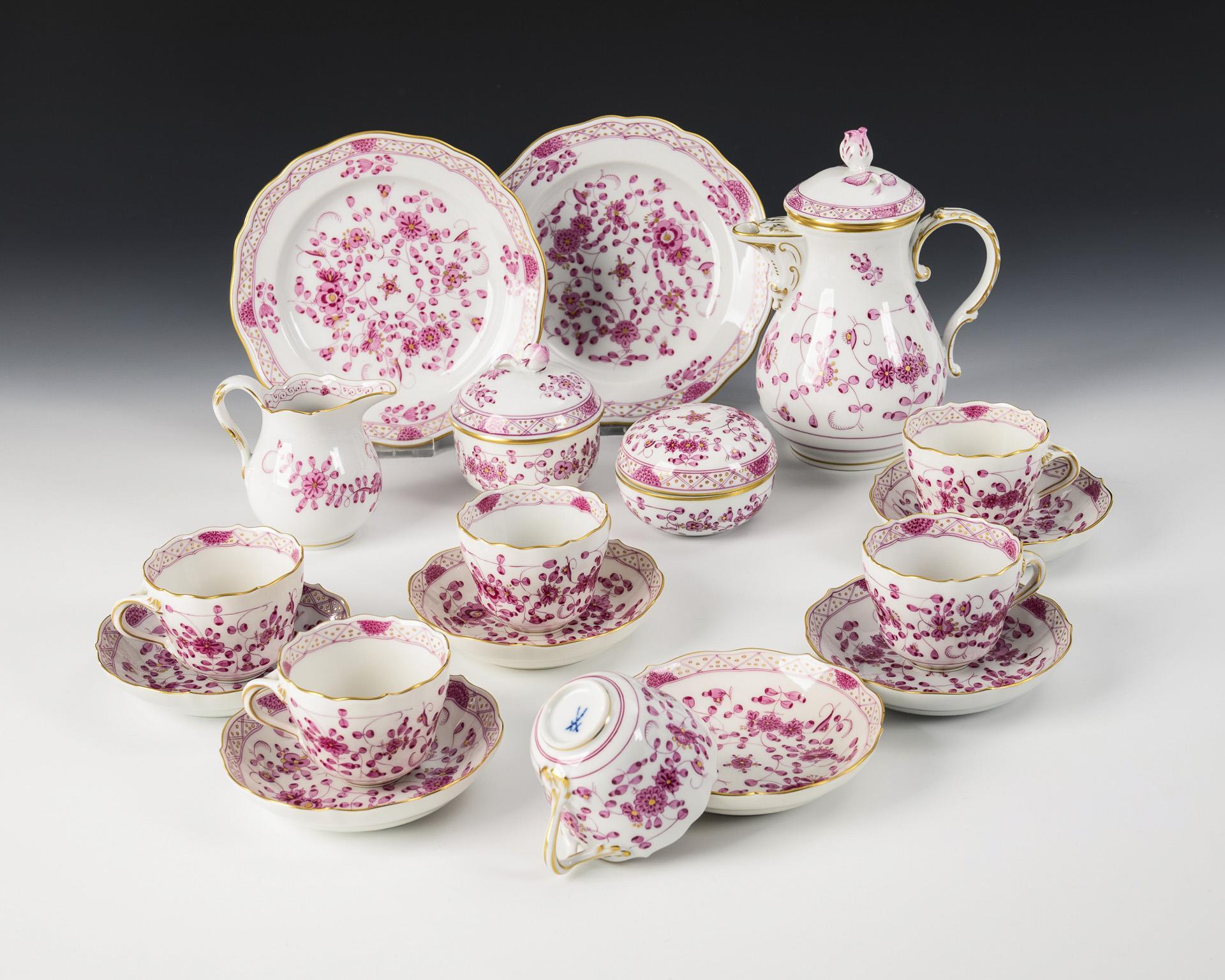 18 Teile eines Mokkaservice "Indisch Purpur". Meissen.