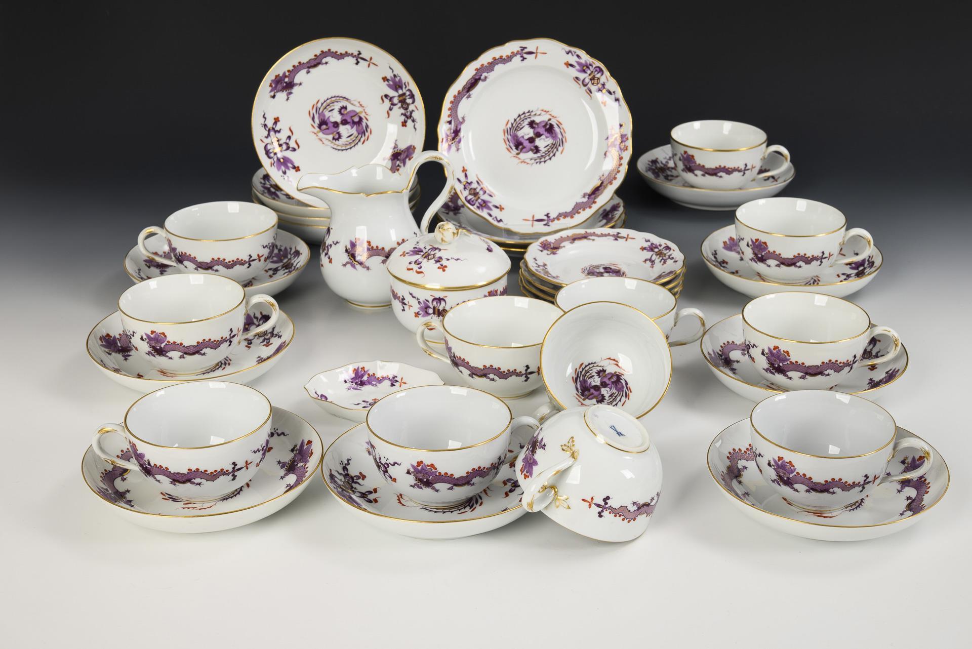 34 Teile eines Teeservice mit Drachendekor. Meissen.