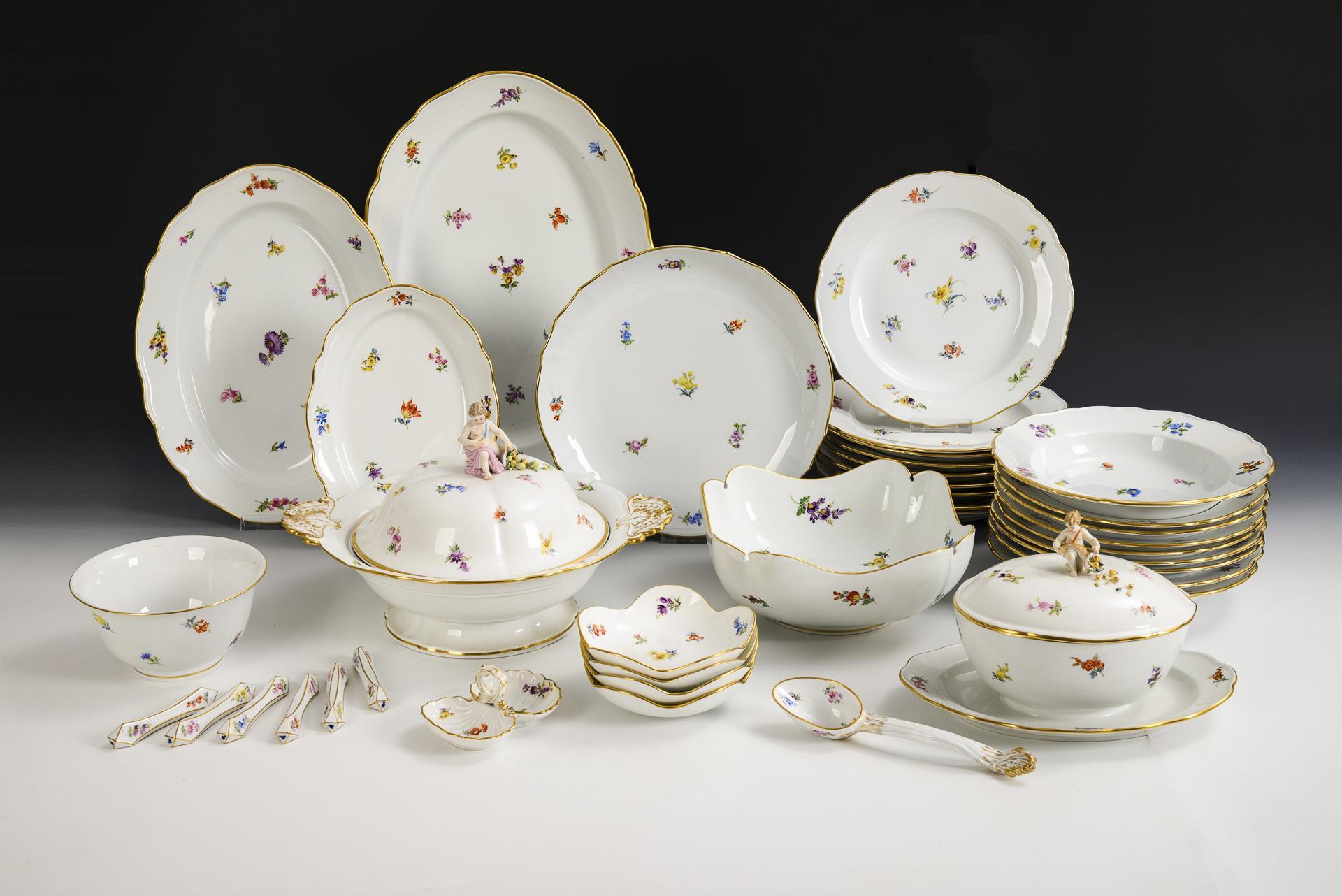 Speiseservice mit Streublümchenmalerei. Meissen.