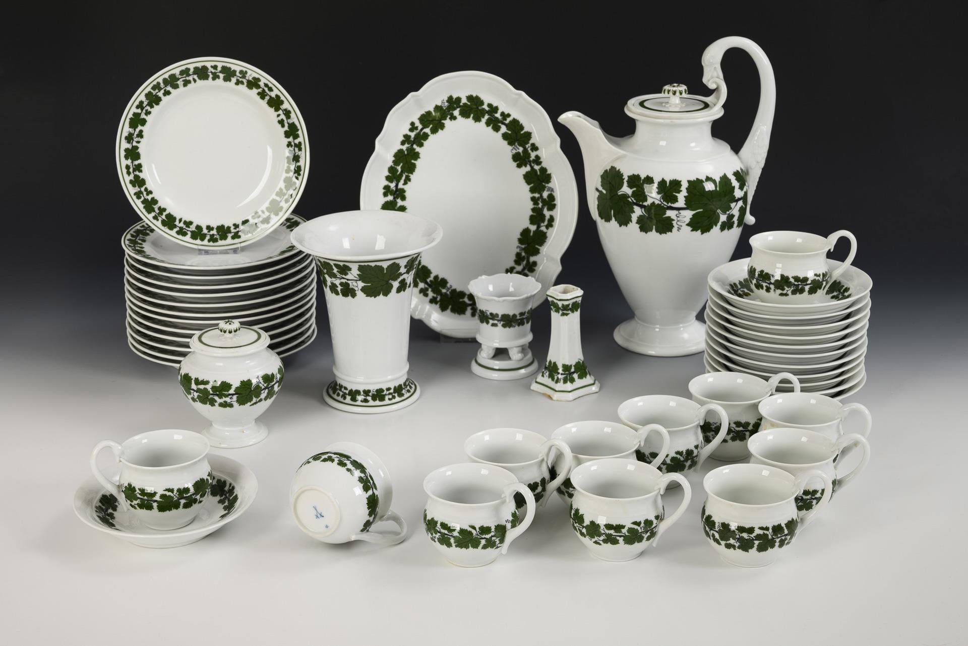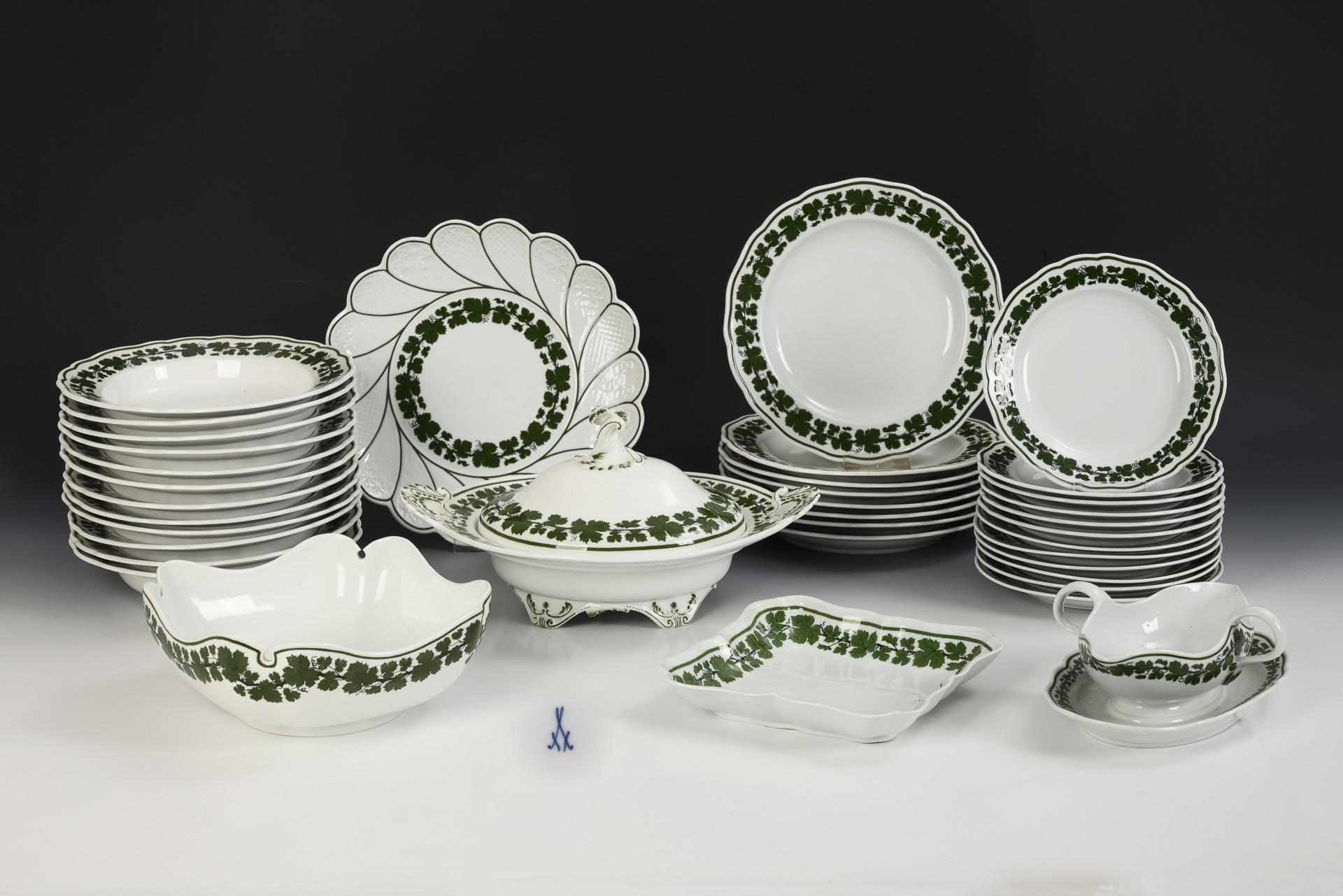 37 Teile eines Speiseservice mit Weinlaubdekor. Meissen.