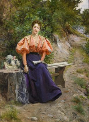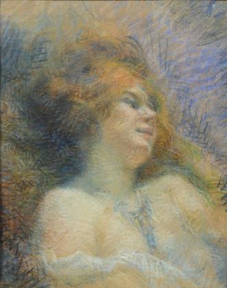 Frankreich um 1900: Jugendstil-Dame in Pastell