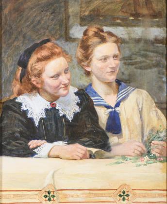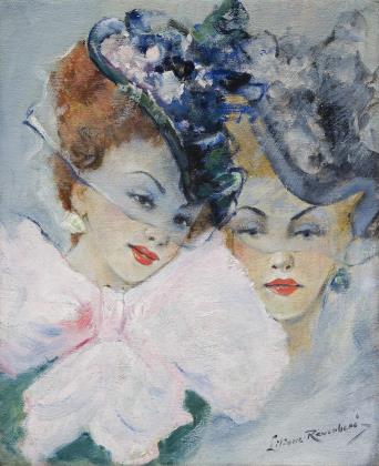 BILDNISMALERIN 20. JAHRHUNDERT. Zwei junge Damen mit Hut.