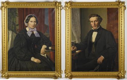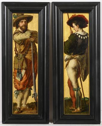 Kokett und selbstsicher präsentiert sich das Paar dem Betrachter. Breiter geschnitzter Rahmen