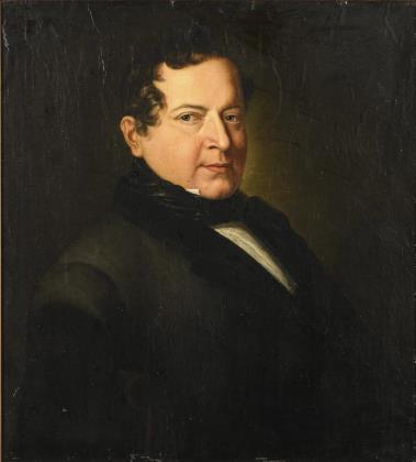 Porträt des Friedrich Georg Graeber (1816-1847) aus Hamburg im blauen Gehrock mit gelber Weste und weißem Hemd