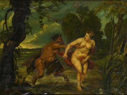 Undeutlich signiert: Faun und Nymphe
