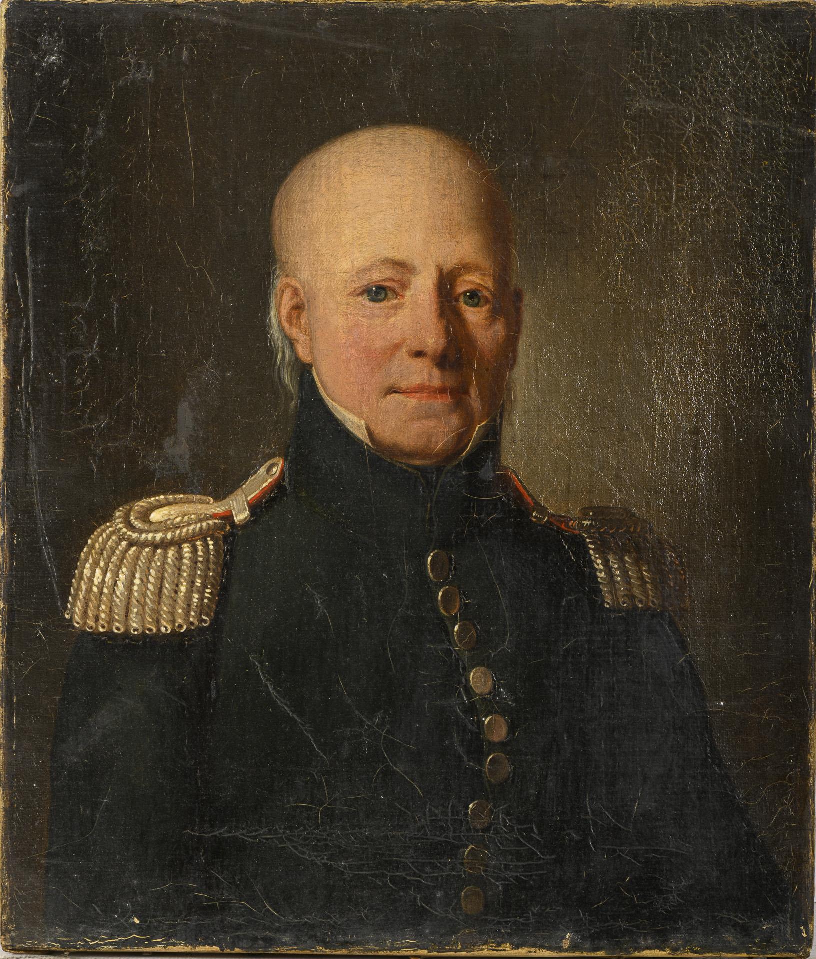 Porträt eines älteren Soldaten in blauer Uniform mit großen Epauletten