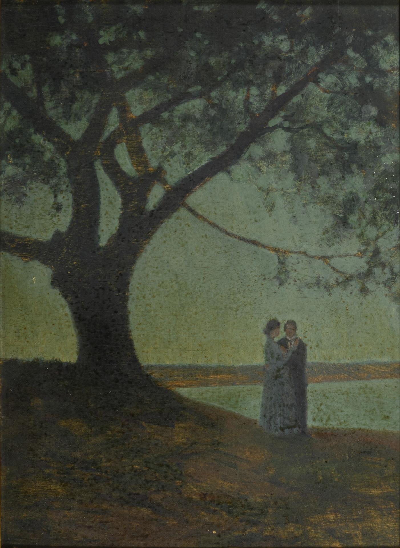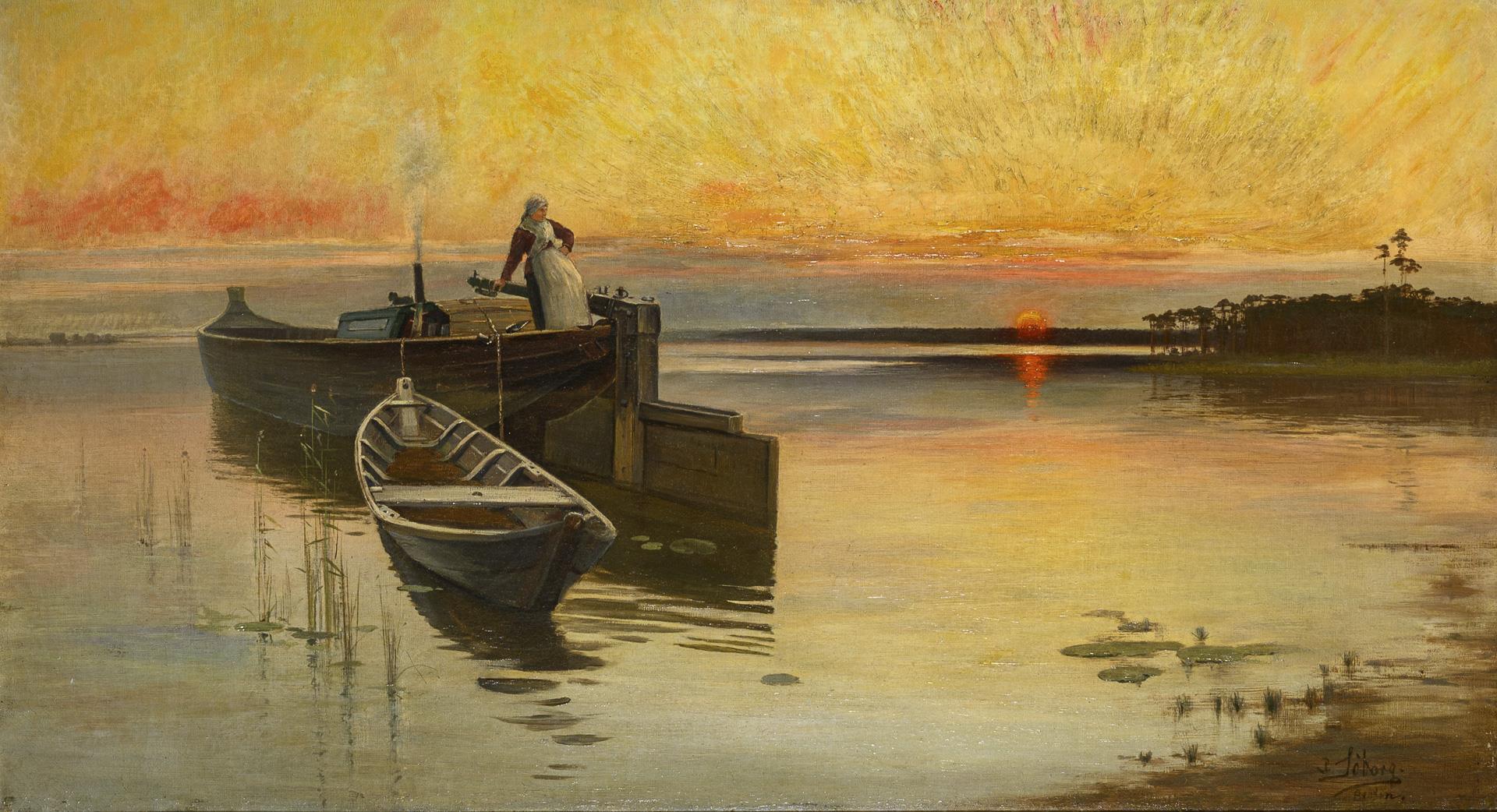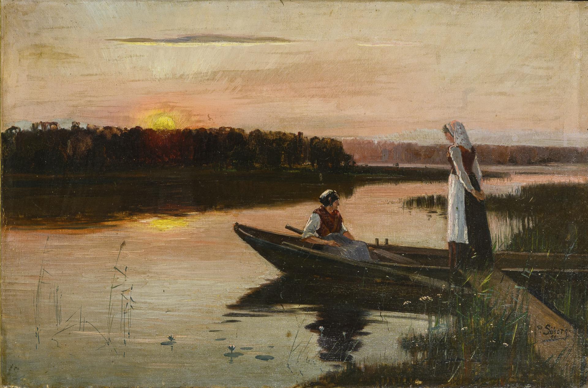 SÖBORG, Paul (1852 Berlin - 1937 ebd.). Liebespaar im Kahn bei Werder a.d. Havel.