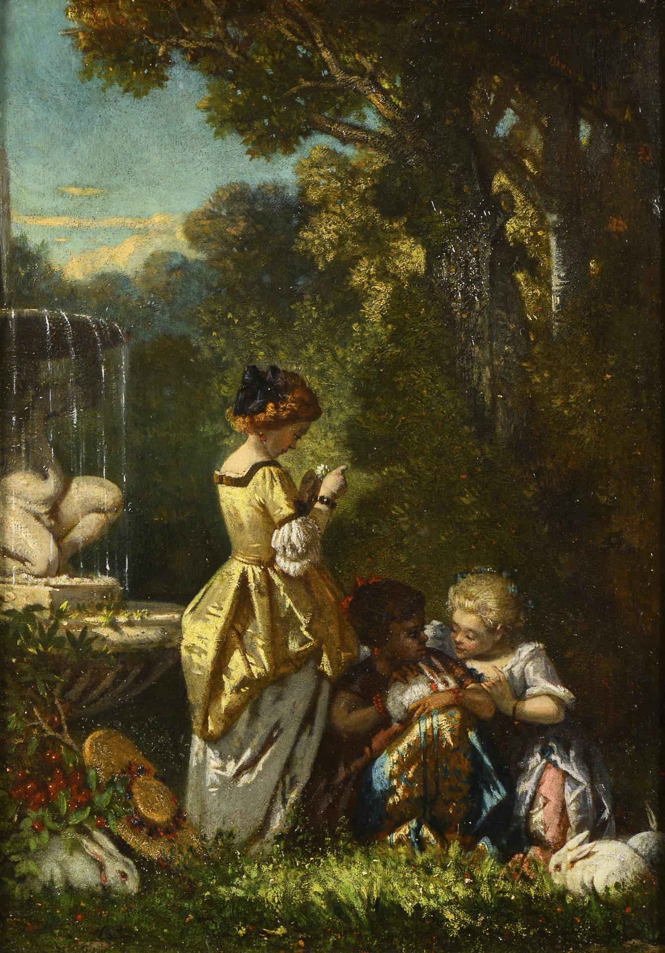 BESSON, Faustin (1821 Dole - 1882 Paris). Spielende Mädchen mit Hasen.