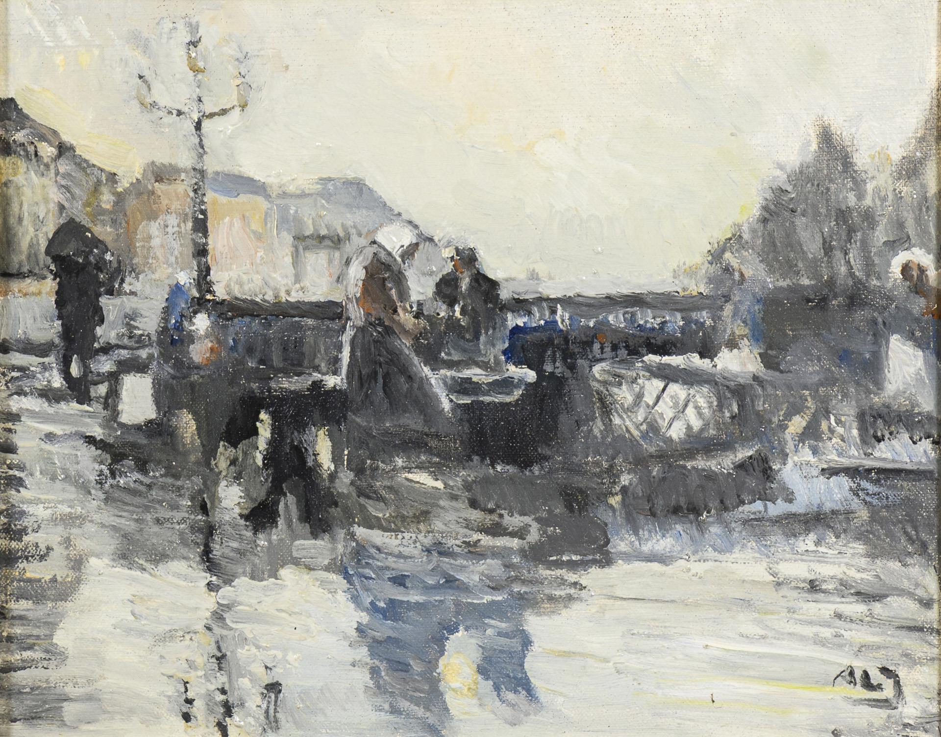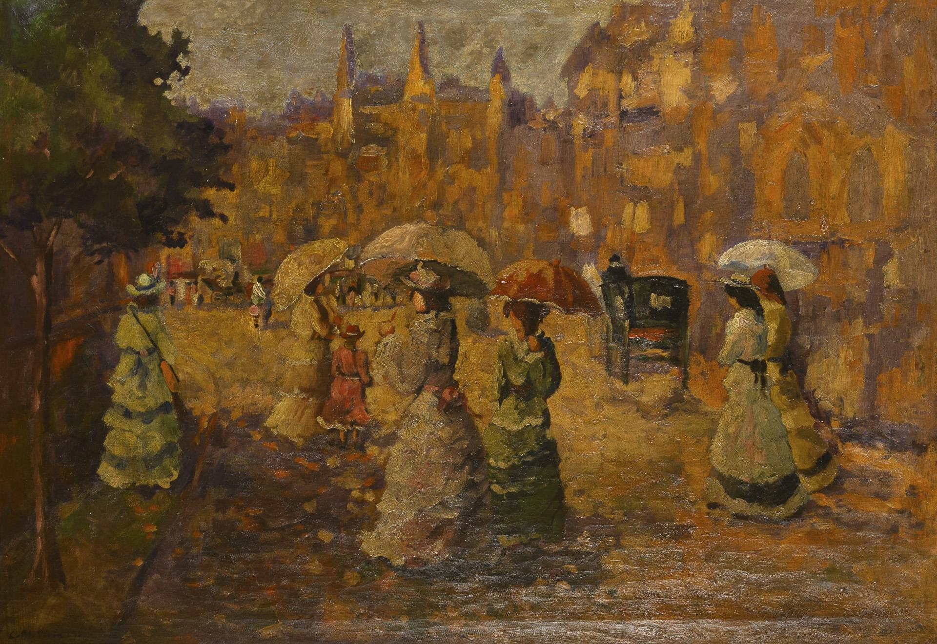 Monogrammist "C.M.": Impressionistische Stadtszene mit vielen Personen.