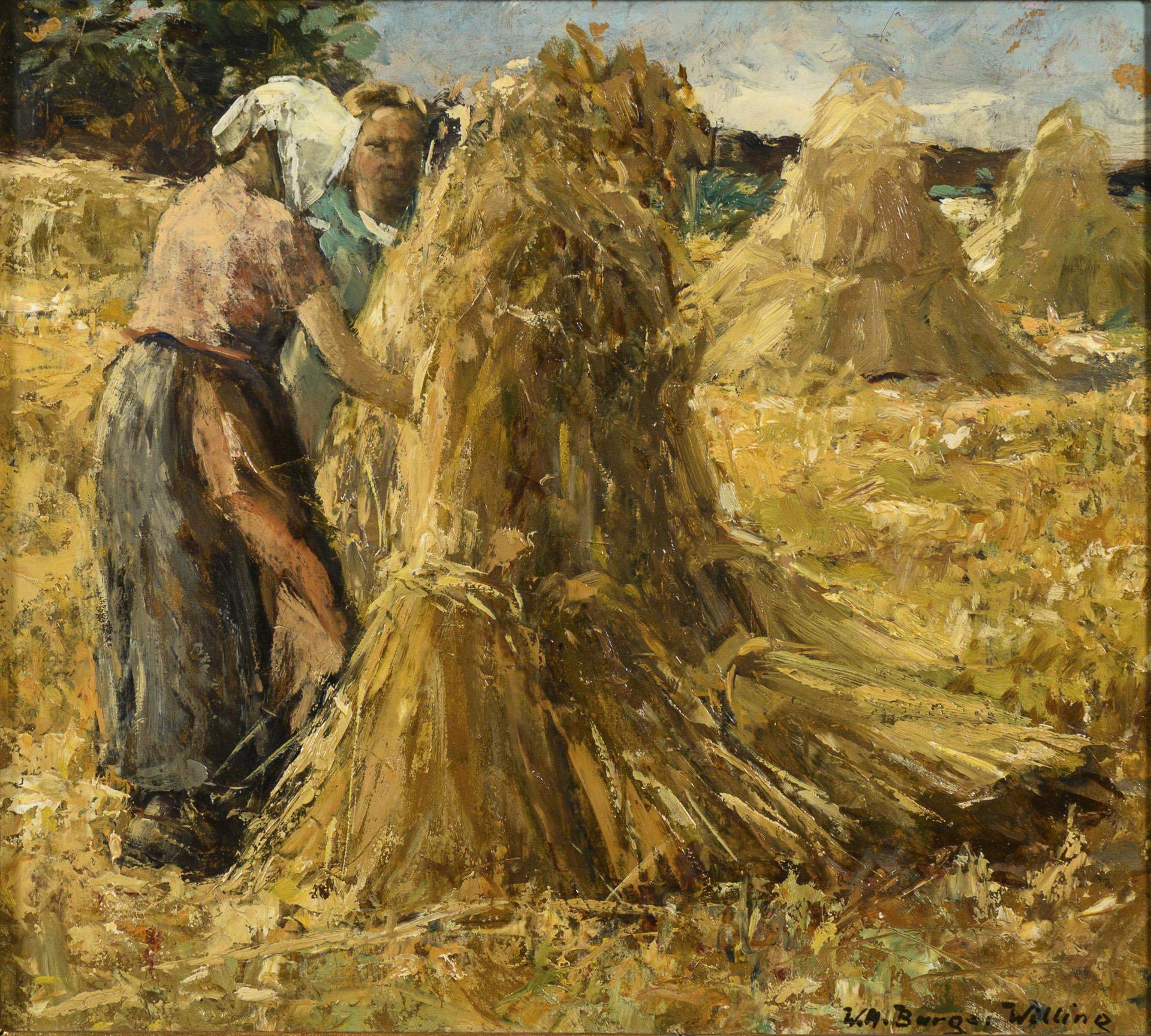 Undeutlich signiert: Erntelandschaft.