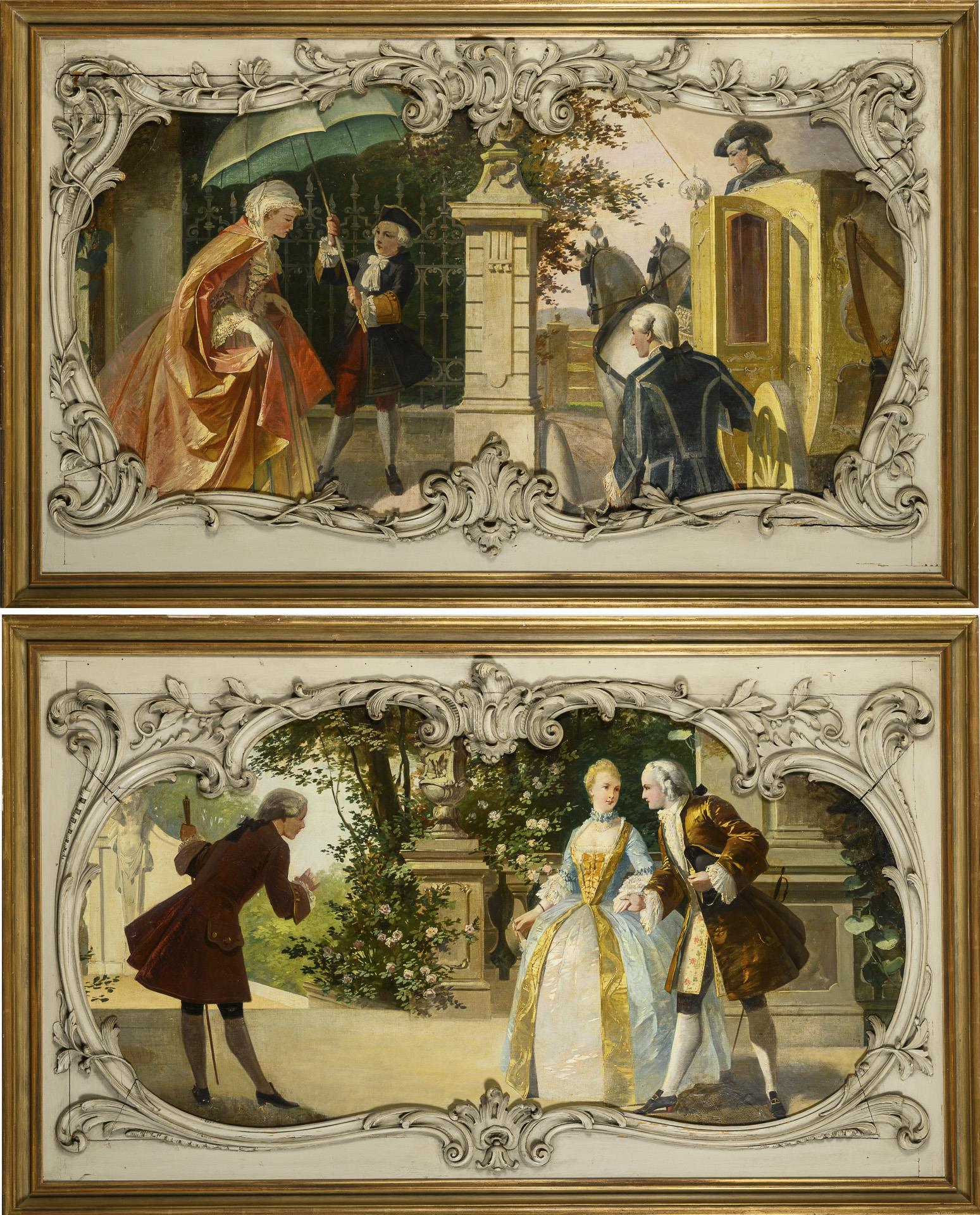 NEBEL, Carl (1865 Frankfurt/Main - 1939). Zwei Genreszenen im Rokokopassepartout.