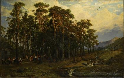 Impressionistische dargestellter Waldrand mit Staffage