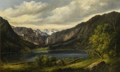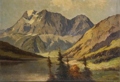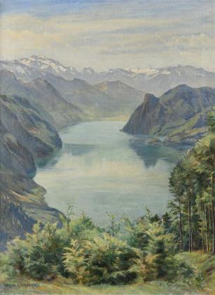 BACHMANN, Minna. Landschaft mit Alpensee.