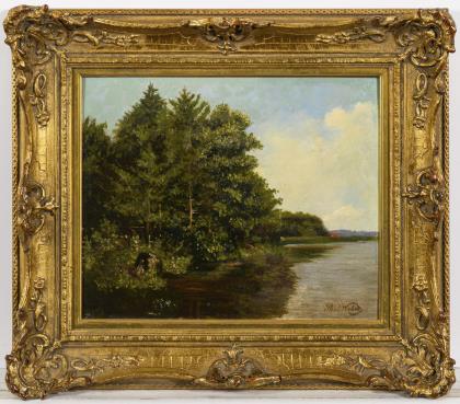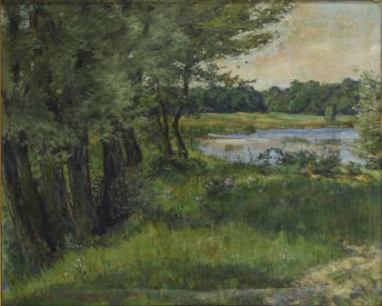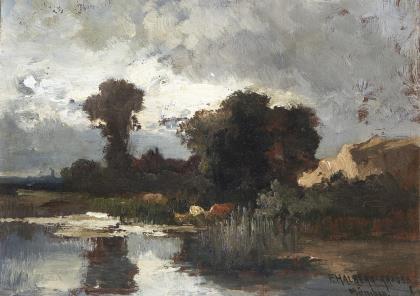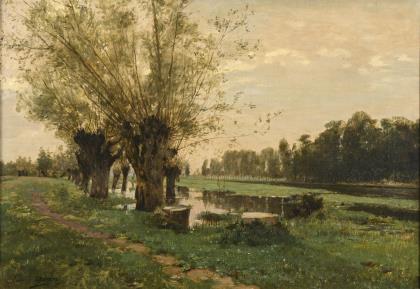 ADAN, Louis Emilé (1839 Paris - 1937 ebd.). Flussaue mit Kopfweiden.