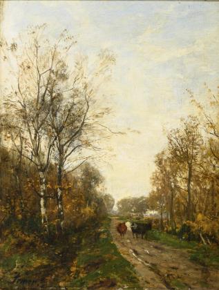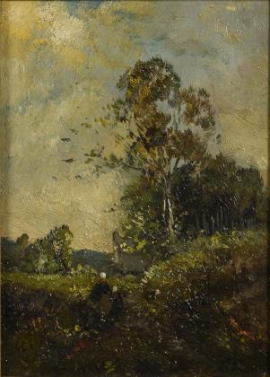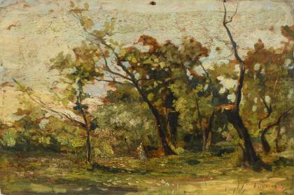 Schule von Barbizon: Waldlandschaft mit Staffage.
