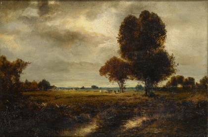 SCHEFFER, Paul (1877 Kassel - 1916 Berlin). Landschaft mit Bauern und Kühen.